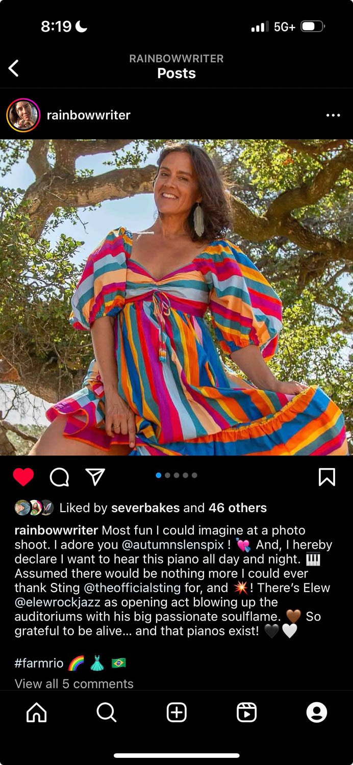 Your photos have been a beneficial part of my process. They have invigorated beauty and fire in me and that has to do with your very impressive presence photographing. I have never experienced somebody who could meet me the way you do. As I have been creating the slideshow for my master class having your photos to make the slides has been really beautiful. If I was not self disciplined, and I was hyper indulgent and impulsive I would like to do a photo shoot with you every month, but that would be just not needed because the photos you take really last.